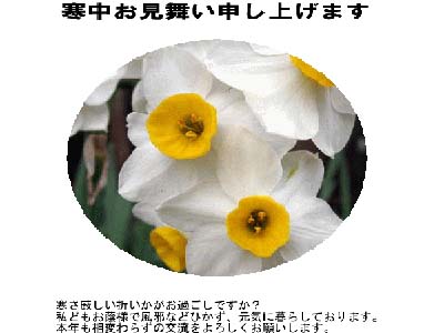 年明けて年賀状が少し届いたので、寒中見舞いのはがきです。